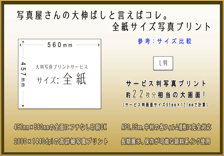 写真屋さんの大伸ばしといえばコレ。全紙サイズ写真プリントサービスのご案内です。